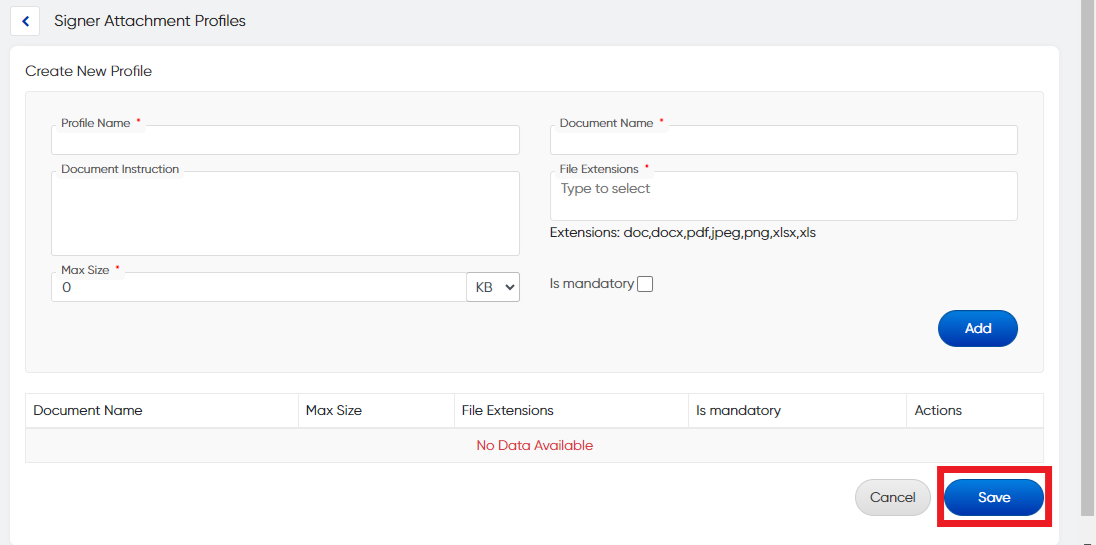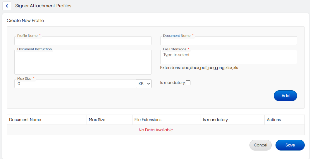 **Step 2:** You can make attachments mandatory for signers. multiple profile can be created for the multiple workflows.