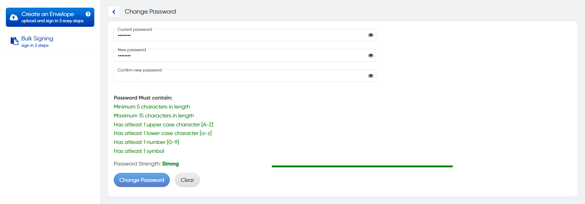 **Step 4**: Now enter your new password and click on the “Change Password” button. The user will have to follow specific conditions of length and complexity when providing the new password.
