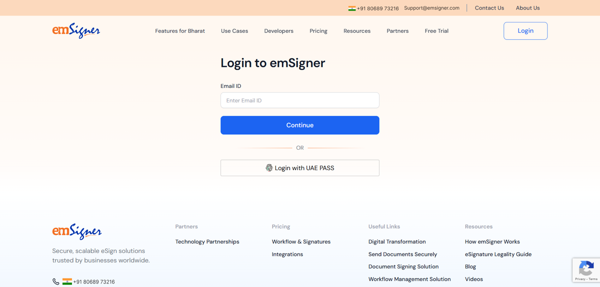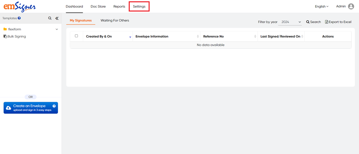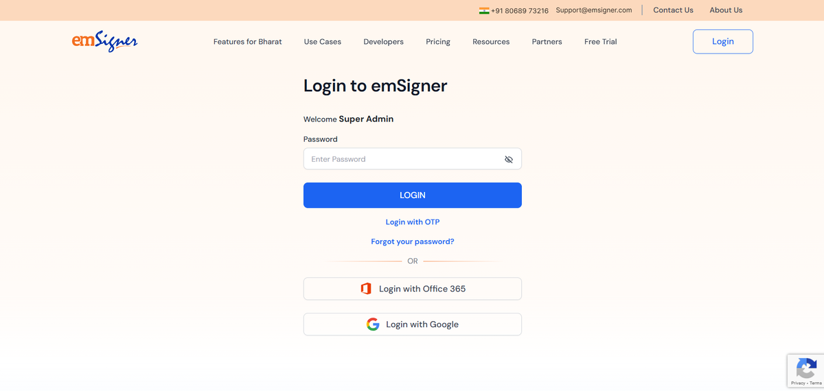 **Step 1:** Log in to the emSigner account using your **Admin User Name** and **Password**
